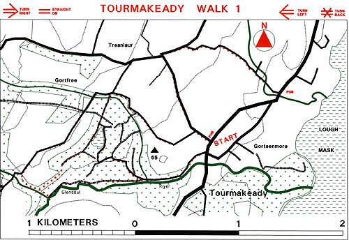 (There are copies of the maps on the following pages but original copies may be obtained from the local Tourism Office. While every care has been taken in compiling these maps, Tourmakeady Tourism Group, it's servants or agents, are not liable for any loss, injury damage or inconvenience sustained or caused as a result of using these guides.)